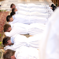 Am 10. Mai weihte Weihbischof Franz Scharl in der Pfarrkirche St. Leopold Donaufeld sieben Männer zu Diakonen für die Erzdiözese Wien. Die Kandidaten kommen aus verschiedenen Gemeinschaften: drei aus dem Wiener Priesterseminar, einer aus dem Benediktinerpriorat St. Josef in Maria Roggendorf und drei aus dem diözesanen Missionskolleg „Redemptoris Mater". Manuel Rennhofer, Joachim Loshehand und Julius Moses Münzer kommen aus dem Wiener Priesterseminar, P. Leo Maria Zehetgruber gehört dem Benediktinerpriorat St. Josef in Maria Roggendorf an drei weitere Kandidaten stammen aus dem diözesanen Missionskolleg „Redemptoris Mater“. Diese Vielfalt unterstreicht die Breite der geistlichen Berufungen in der Erzdiözese. Wir waren mit der Kamera dabei.