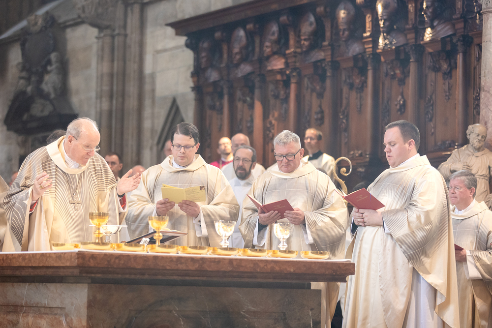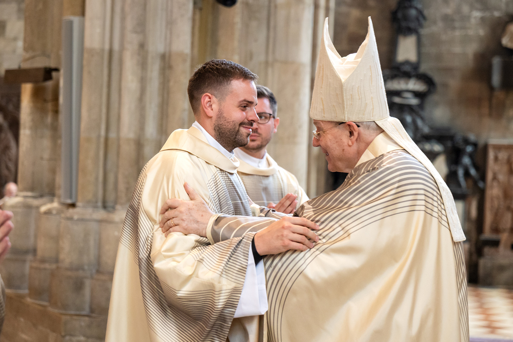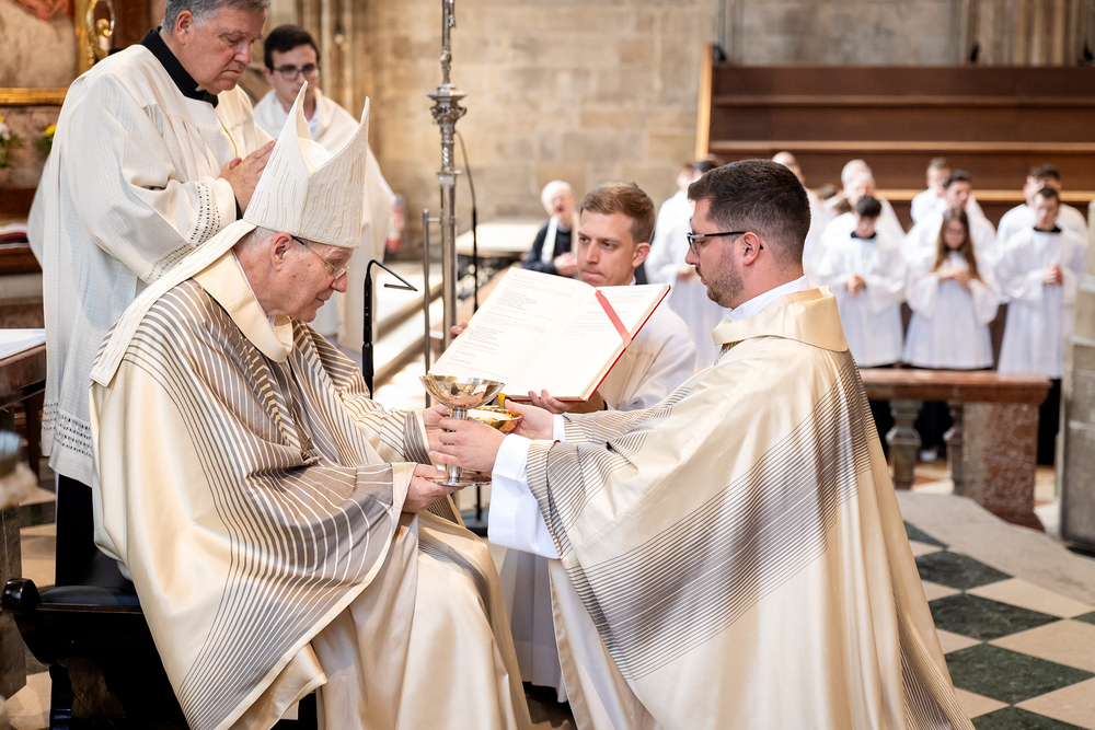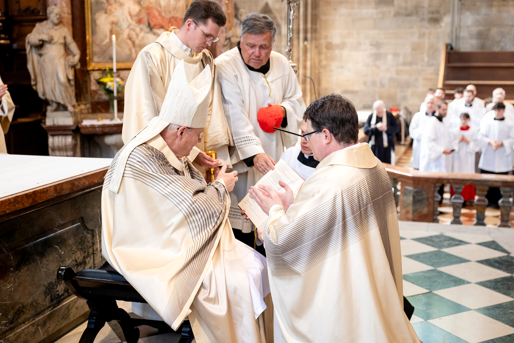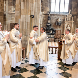 Am 14. Juni 2025 wurden fünf Diakone der Priesterseminare Wien und Redemptoris Mater im Wiener Stephansdom durch Kardinal Christoph Schönborn OP zu Priestern der Erzdiözese Wien geweiht. Wir waren mit der Kamera dabei.